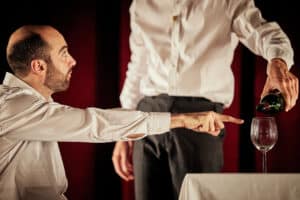 Ein Tisch, ein Sessel, eine Flasche. Und ein Glas Wein, das der Kellner dem Gast serviert. So die Ausgangssituation. Doch wer bedient hier wen? Oder wer dient wem? Wer bezahlt am Ende die Rechnung oder macht einen Strich durch die des anderen? In der Arbeit des britischen Autors und Regisseurs Tim Etchells, die er ursprünglich mit Bertrand Lesca und Nasi Voutsas in Avignon entwickelte, werden Machtdynamiken genauso erbittert wie humorvoll in zahlreichen Variationen derselben Szene durchgespielt. Mit Tisch, Sessel und Flasche lädt die Freie Republik Wien in Kooperation mit dem Volkstheater im Frühling und Herbst zur Slapstick-Komödie in alle 23 Wiener Bezirke: von der Tschauner Bühne in Ottakring bis zum Fußballklub in Floridsdorf. Denn Macht betrifft uns alle: Sie kann ein Albtraum, aber auch urkomisch sein.